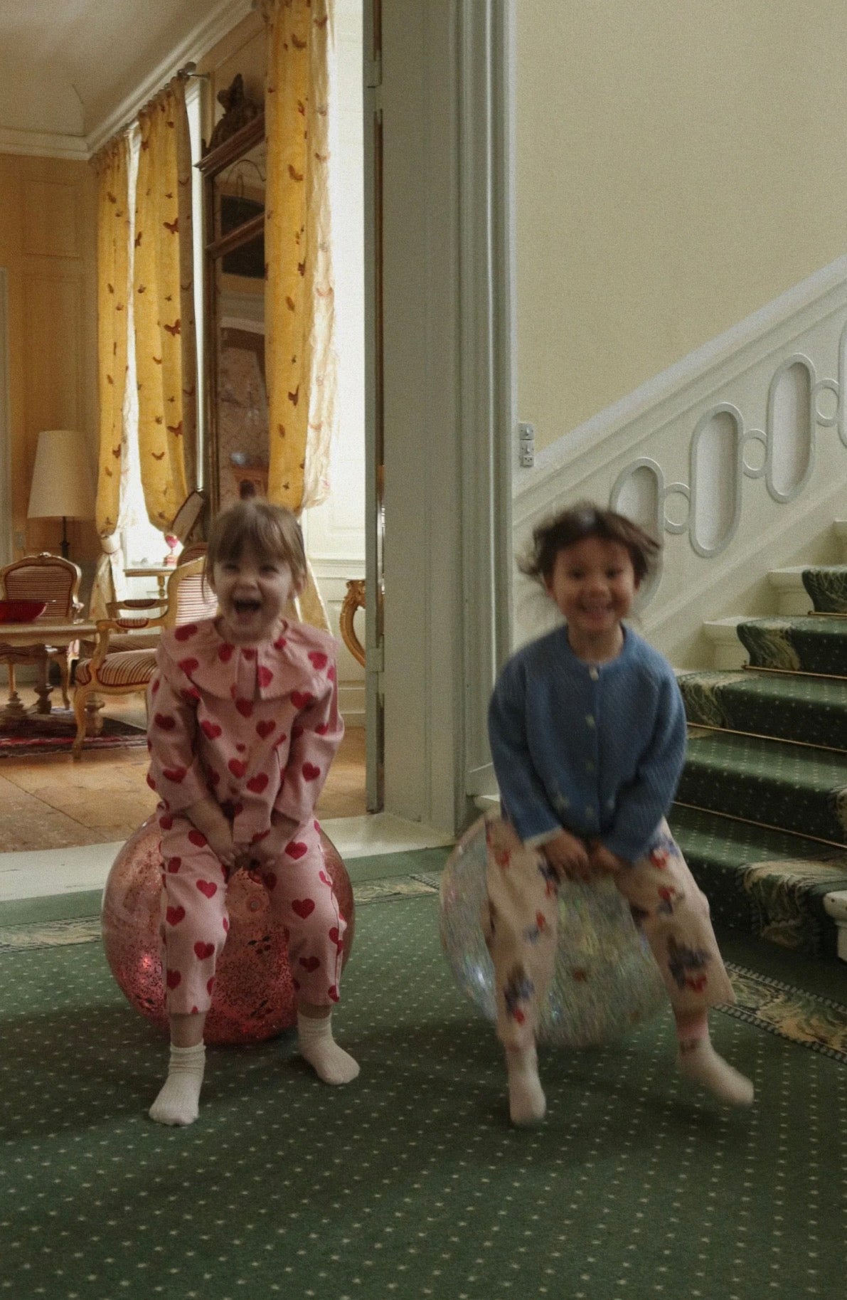 Riesiger Hüpfball mit Griff für einen sicheren Halt. Festhalten und los geht's!