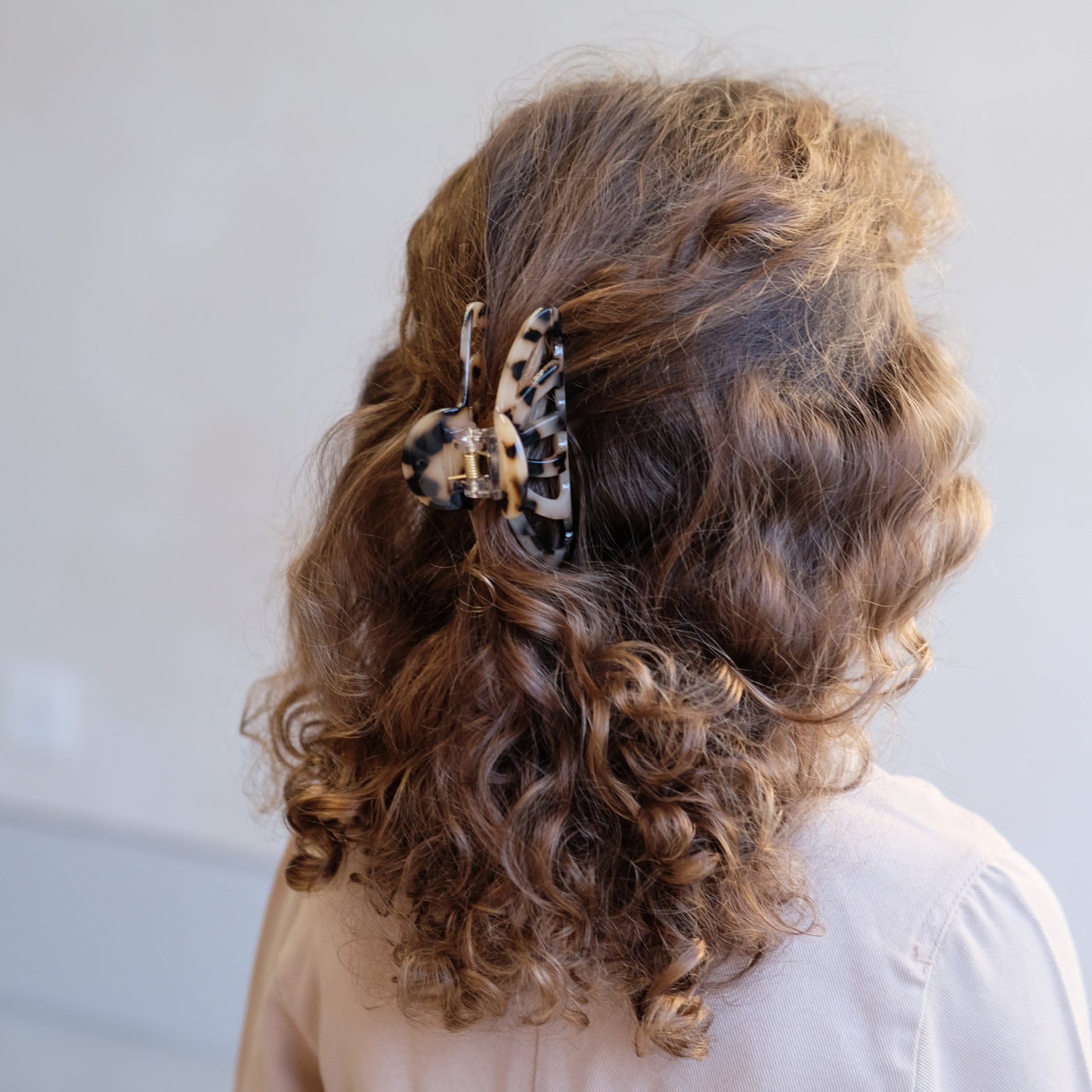 Wir sind ganz verrückt nach dieser coolen neuen Leoparden-Haarkralle! Eine große Klammer mit starkem Halt – perfekt, um mühelos größere Haarpartien zurückzustecken. Auch ideal für Erwachsene, falls du sie dir mal ausleihen möchtest!